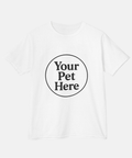 Our classic white Tee becomes uniquely yours when paired with any of our signature Petunia Woof pet art designs.